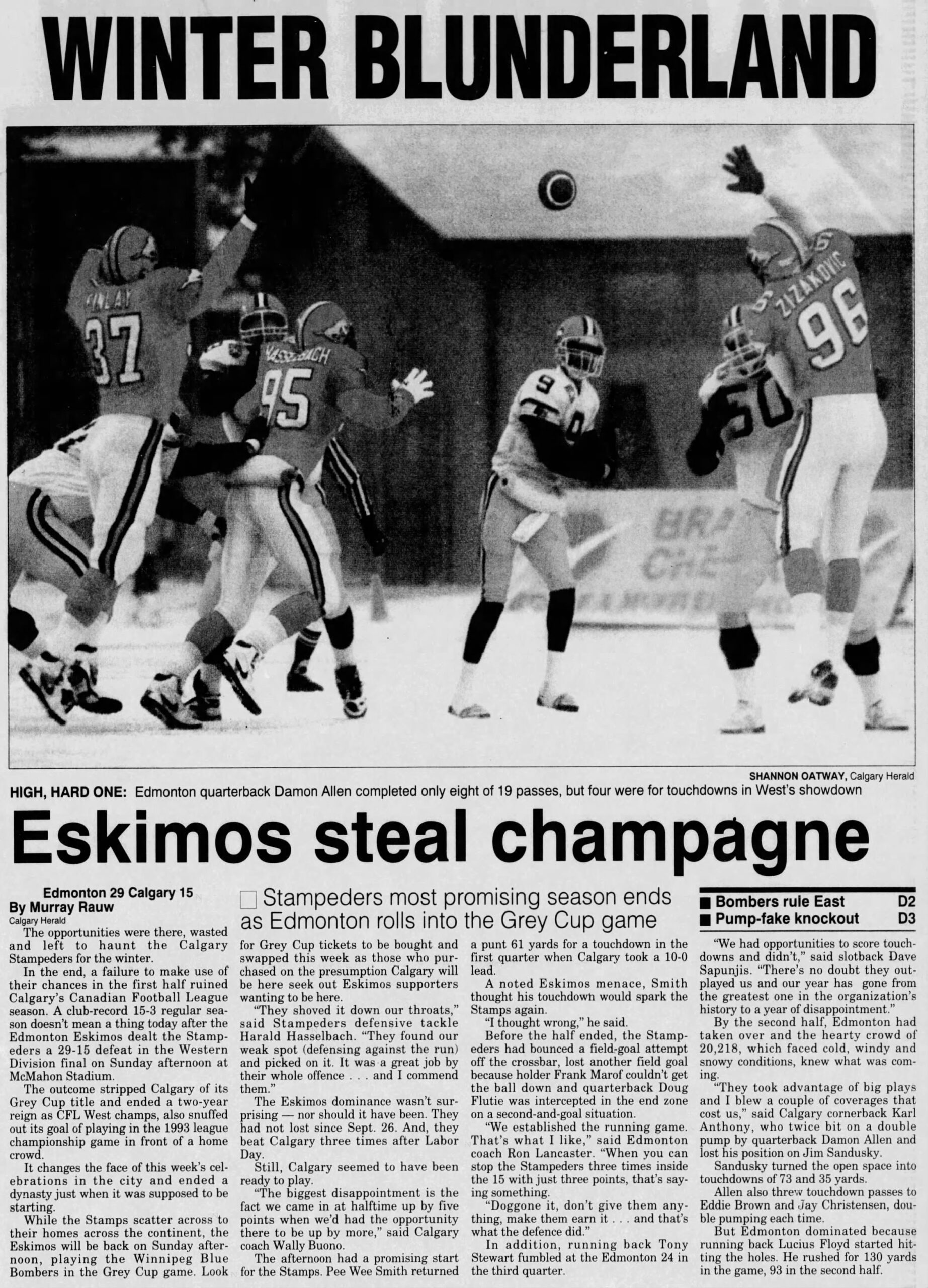 Coverage of the 1993 Western Final in the Calgary Herald (22 November 1993)