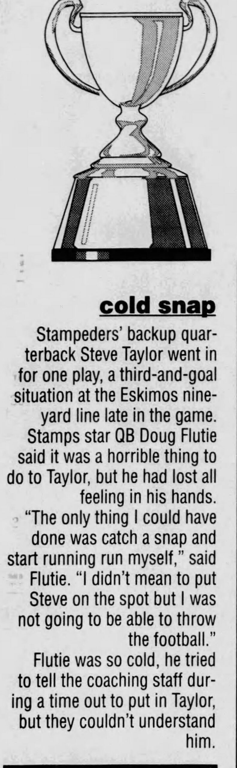 • Flutie Freezes as Edmonton Defeats Calgary in Frigid, Snowy 1993 Western Final