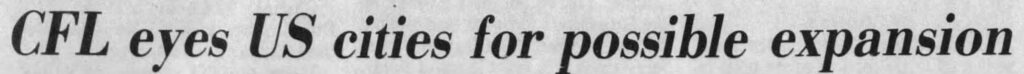 Ian MacDonald in the Montreal Gazette (13 November 1992) writing about the CFL’s expansion plans with new teams Montreal, Portland, Sacramento, and San Antonio.