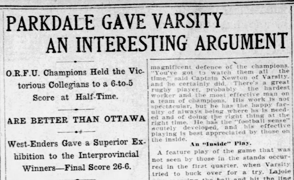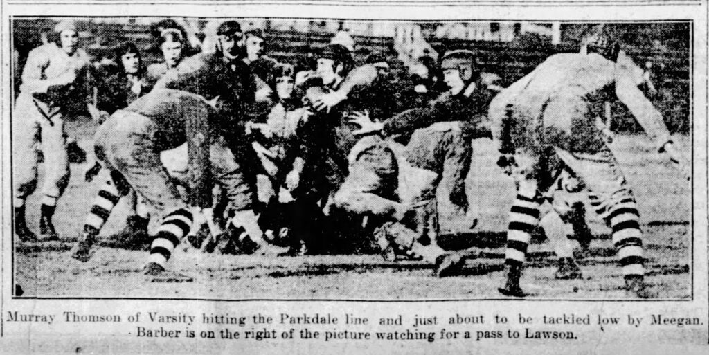 The above article appeared in the Hamilton Spectator on the eve of the 2nd Grey Cup. The Hamilton Tigers were preparing to host the University of Toronto at the A.A.A. Grounds in Hamilton.