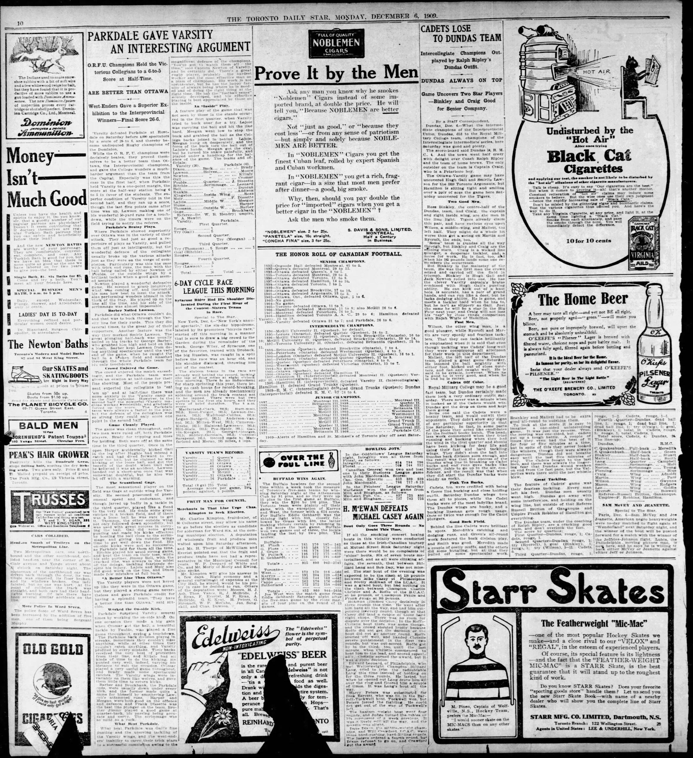 The above article appeared in the Hamilton Spectator on the eve of the 2nd Grey Cup. The Hamilton Tigers were preparing to host the University of Toronto at the A.A.A. Grounds in Hamilton.