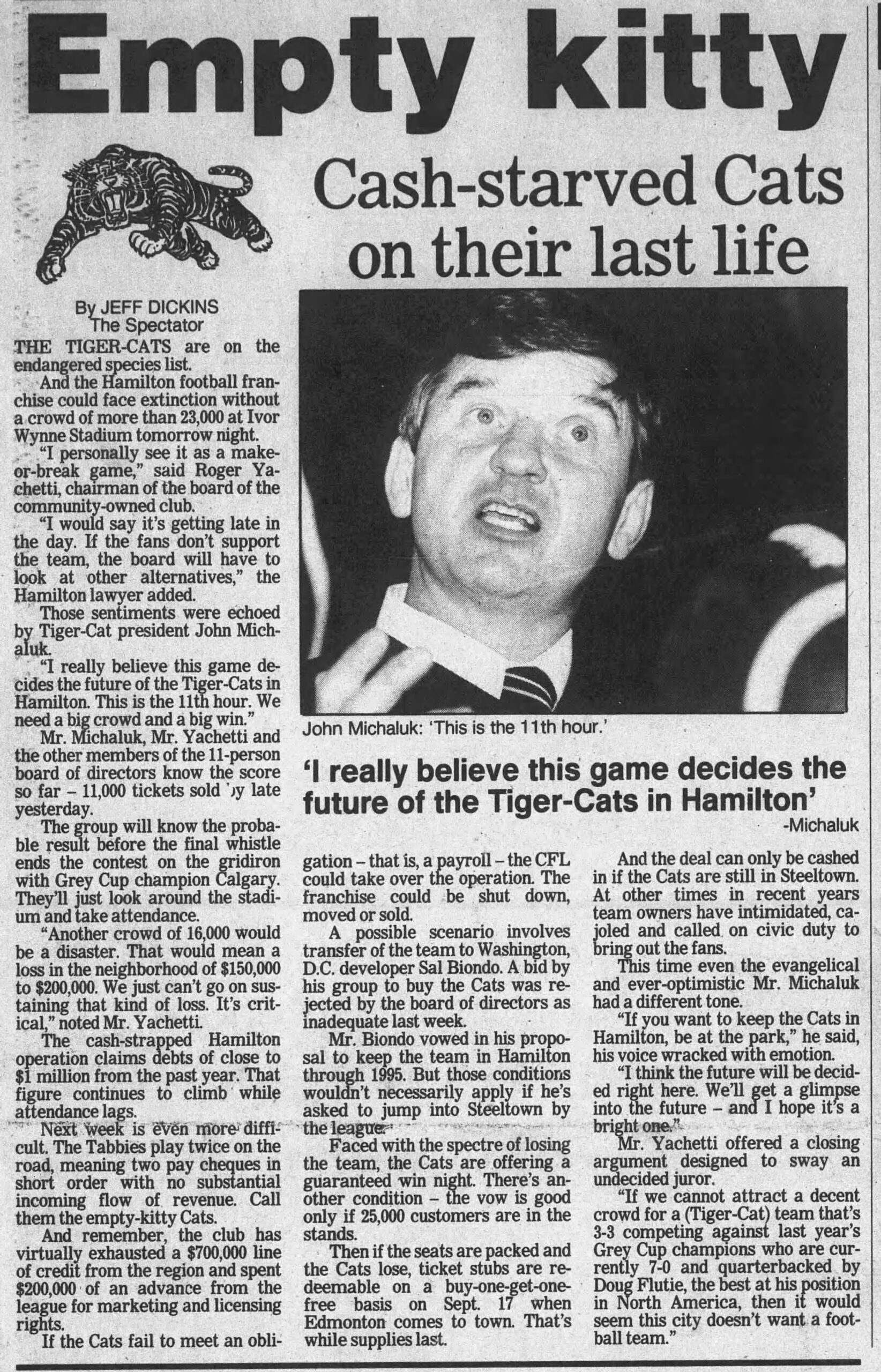 This is the article in the Spectator that really prompted my brother and me to attend our first Tiger-Cat game in 1993. We would become season ticket holders in 1995.